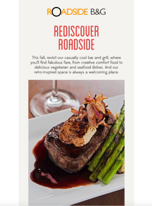 - They wanted to promote each of their 5 restaurants to promote new menu items, seasonal specials, and encourage guests to eat at the restaurants—without spamming inboxes.