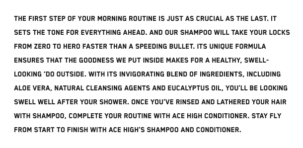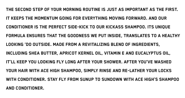 I wrote product copy for Ace High’s Dynamic Duo, Shampoo + Conditioner.